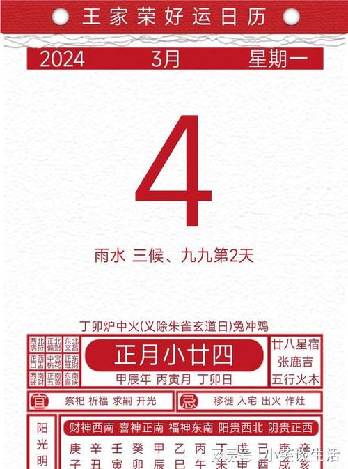 3月4日的良辰吉日問題涉及到中國傳統(tǒng)文化中的黃道吉日概念。黃道吉日是指根據(jù)星象和五行八字推算出的適宜辦事的日子。以下是關于2024年3月4日的黃道吉日信息及其傳統(tǒng)習俗的詳細解答。