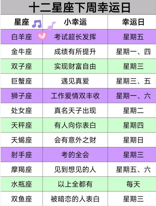 無論你的星座是什么,努力和堅(jiān)持都是實(shí)現(xiàn)目標(biāo)的關(guān)鍵。但如果你趕上了你的幸運(yùn)日,那么這一天或許會成為你人生的轉(zhuǎn)折點(diǎn)。在你的幸運(yùn)日,不要讓機(jī)會溜走,勇敢地抓住它吧!