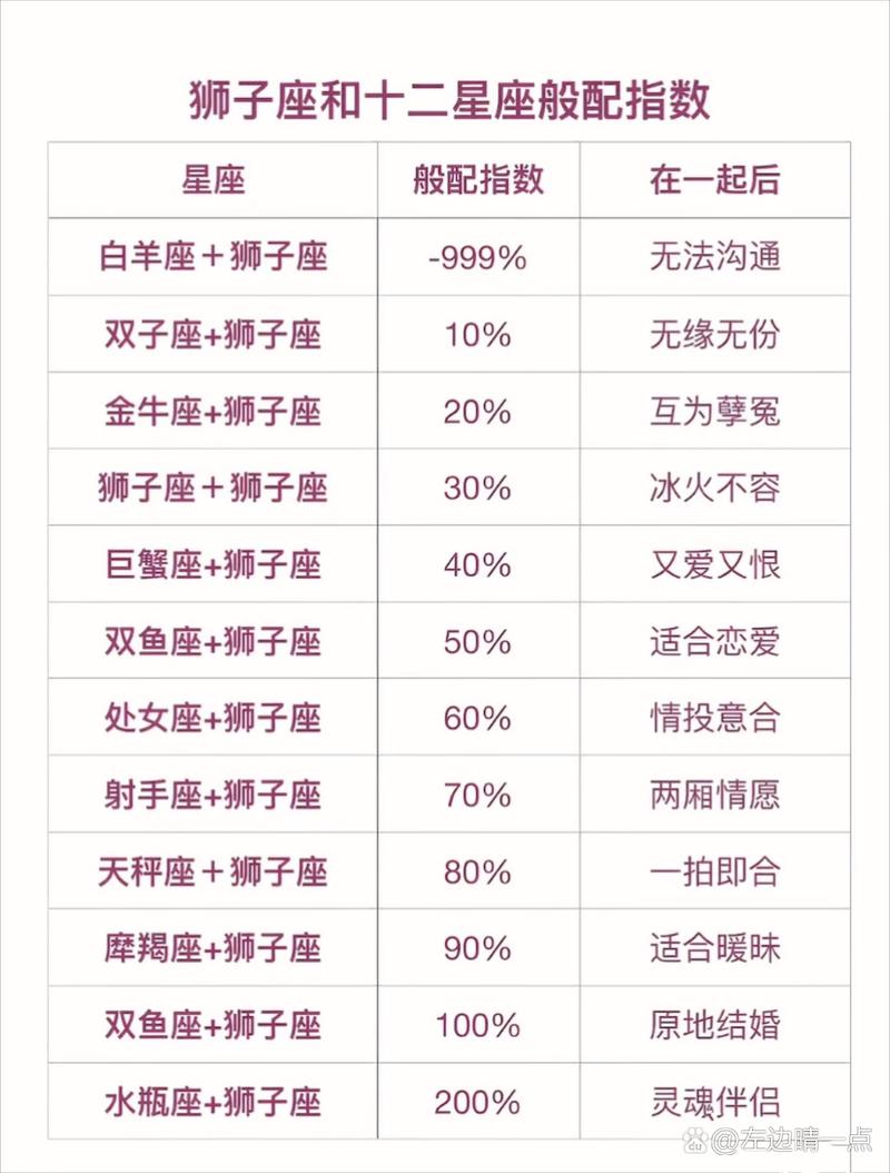 獅子座和處女座的配對指數(shù)只有兩顆星,這是因為他們在性格和價值觀上差異太大,很難磨合到一起。然而,并不是所有的獅處配對都是失敗的,他們也可能通過努力克服差異,建立一段和諧的關(guān)系。