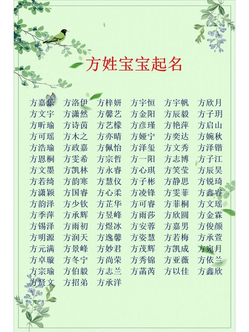 為避免重名,起名時可采用疊字、別字或同音字,如方凡、方飛、方偉等,既有新意,又有紀念意義。