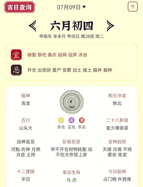 黃道吉日的選擇:根據(jù)中國傳統(tǒng)黃歷,2024年7月的黃道吉日包括7月3日、7月6日、7月7日、7月10日、7月13日、7月14日、7月19日、7月22日、7月25日、7月26日、7月28日和7月31日。