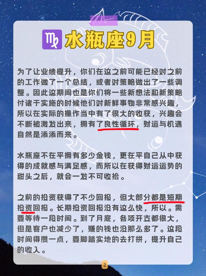 整個(gè)9月,水瓶座男性獲得意外之財(cái)?shù)母怕氏鄬?duì)較低。在社交活動(dòng)中,可能會(huì)有一些小的驚喜,比如朋友贈(zèng)送的貴重禮物或者抽獎(jiǎng)中獎(jiǎng)等情況,但金額通常不會(huì)很大。