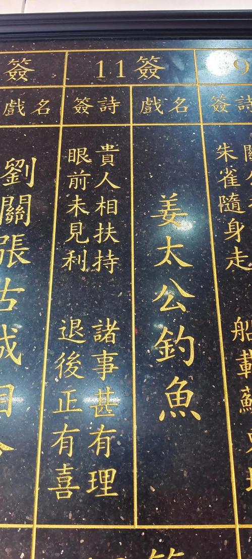 3. 結合典故:姜太公靈簽的簽文往往與姜太公的生平故事相關。例如,姜太公在渭水之濱垂釣,最終遇到周文王,成為一代名相。這個典故象征著在困境中堅持,最終會有貴人相助。