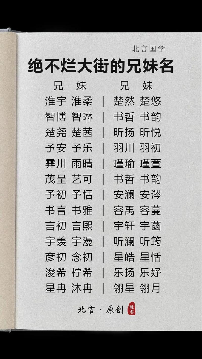 音韻的和諧搭配: 名字的讀音是創(chuàng)作網(wǎng)名的另一個(gè)重要靈感來(lái)源。考慮名字的聲母、韻母、聲調(diào),尋找與之音韻和諧的詞語(yǔ)。如果弟弟的名字讀音清朗,可以搭配一些活潑、陽(yáng)光的詞語(yǔ);如果妹妹的名字讀音柔和,則可搭配一些溫婉、安靜的詞語(yǔ)。 比如,弟弟名字中有“陽(yáng)”,妹妹名字中有“雨”,則可以搭配成“暖陽(yáng)如初”、“細(xì)雨如織”。