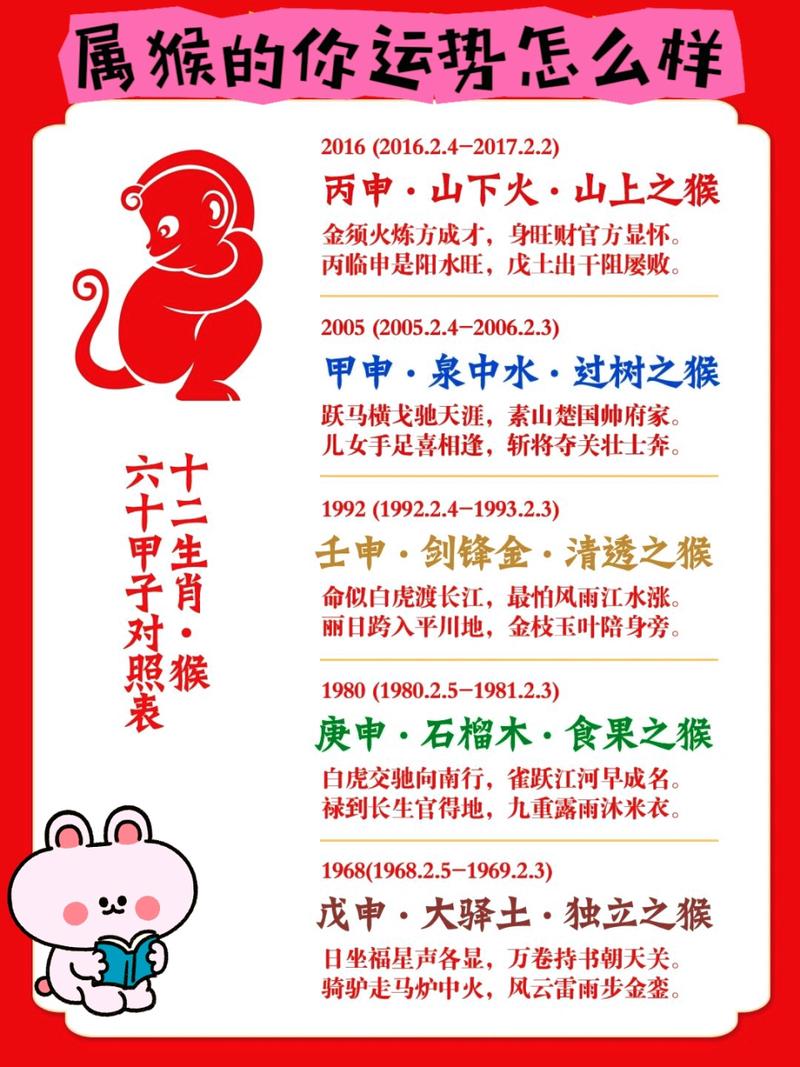 性格篇:猴年出生的人性格機(jī)靈、活潑好動(dòng),雖然行事圓滑,但有時(shí)會(huì)失去耐心,做出沖動(dòng)的決定。機(jī)智聰慧的猴子在2023年會(huì)有意外之喜,不過(guò)要小心言多必失,避免惹禍上身。