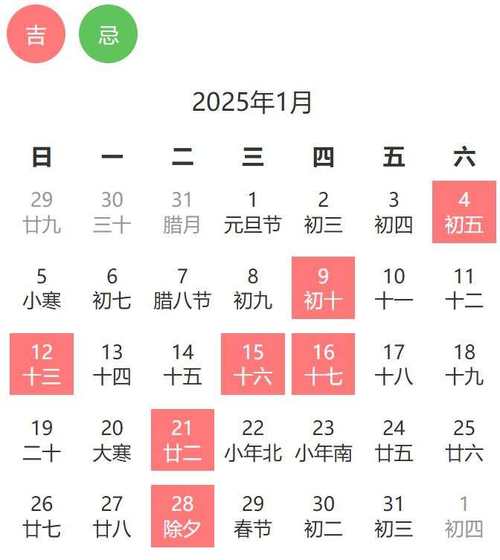 2025年1月有哪些適合出門的日子?根據(jù)傳統(tǒng)的黃歷和宜忌信息,以下是2025年1月適合出門的吉日。