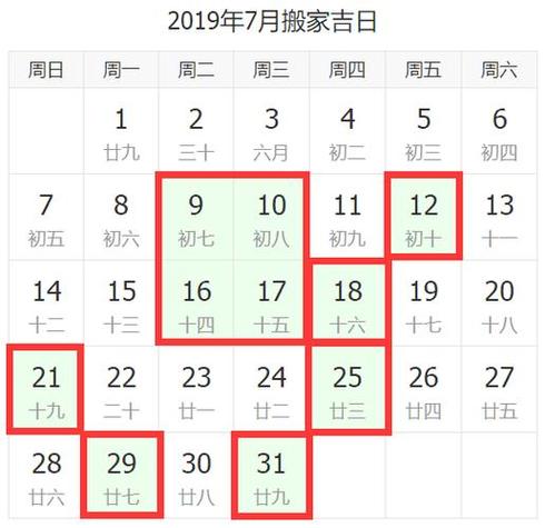 2019年7月份黃道吉日 12月搬家吉日查詢