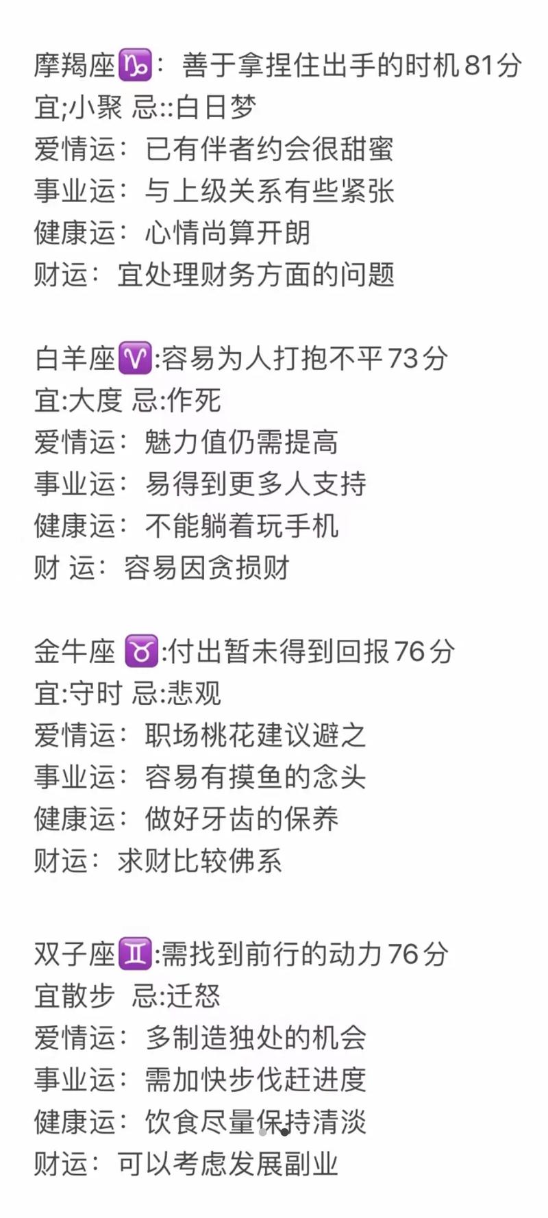 今日健康狀況較為平穩(wěn),但需要注意保持良好的作息,避免過度勞累。健康是革命的本錢,應(yīng)注意休息和鍛煉,保持身心健康。