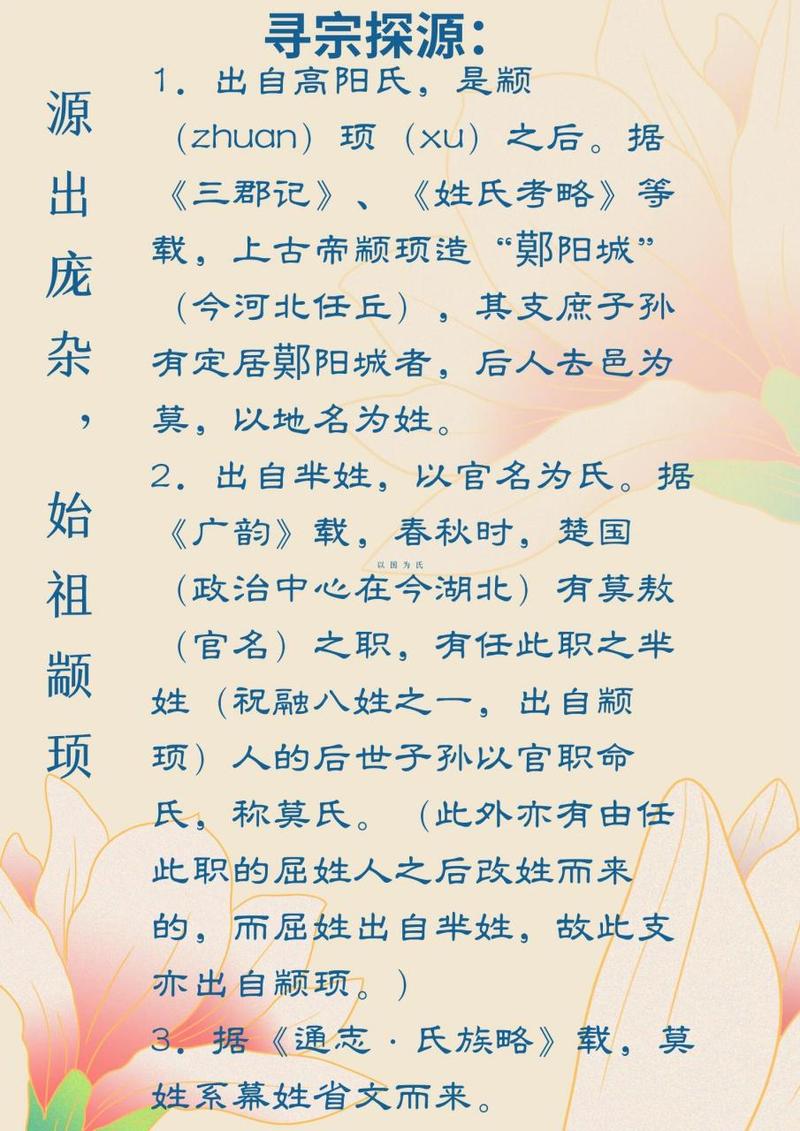 "莫"字拆分為"木"和"日",根據(jù)五行生克關(guān)系,"木"屬木,"日"屬火,因此姓莫的女性五行屬性為木火相生。