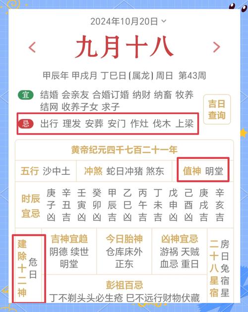 2024年農(nóng)歷九月十八日對(duì)應(yīng)公歷2024年10月20日,這一天是十二建星中的危日,凡事應(yīng)小心之意。