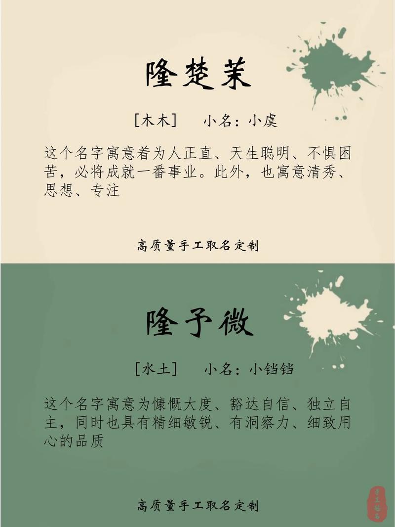 土生萬(wàn)物,也主健康。隆字五行屬土,意味著女孩身體康健。她們體質(zhì)強(qiáng)健,不易生病,晚年福壽安康。