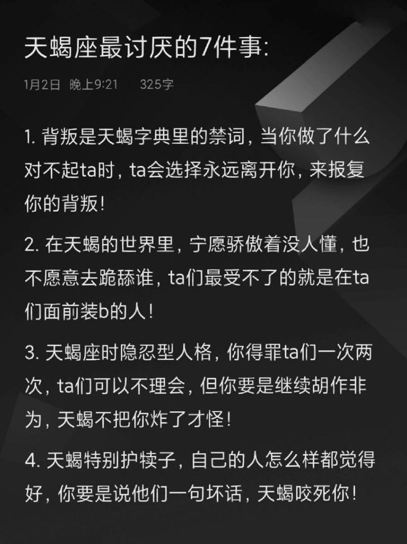 天蝎座天性具有控制欲,希望主宰一切,包括自己的生活和他人。當(dāng)事情脫離他們的掌控時(shí),他們會(huì)感到焦慮和煩躁。