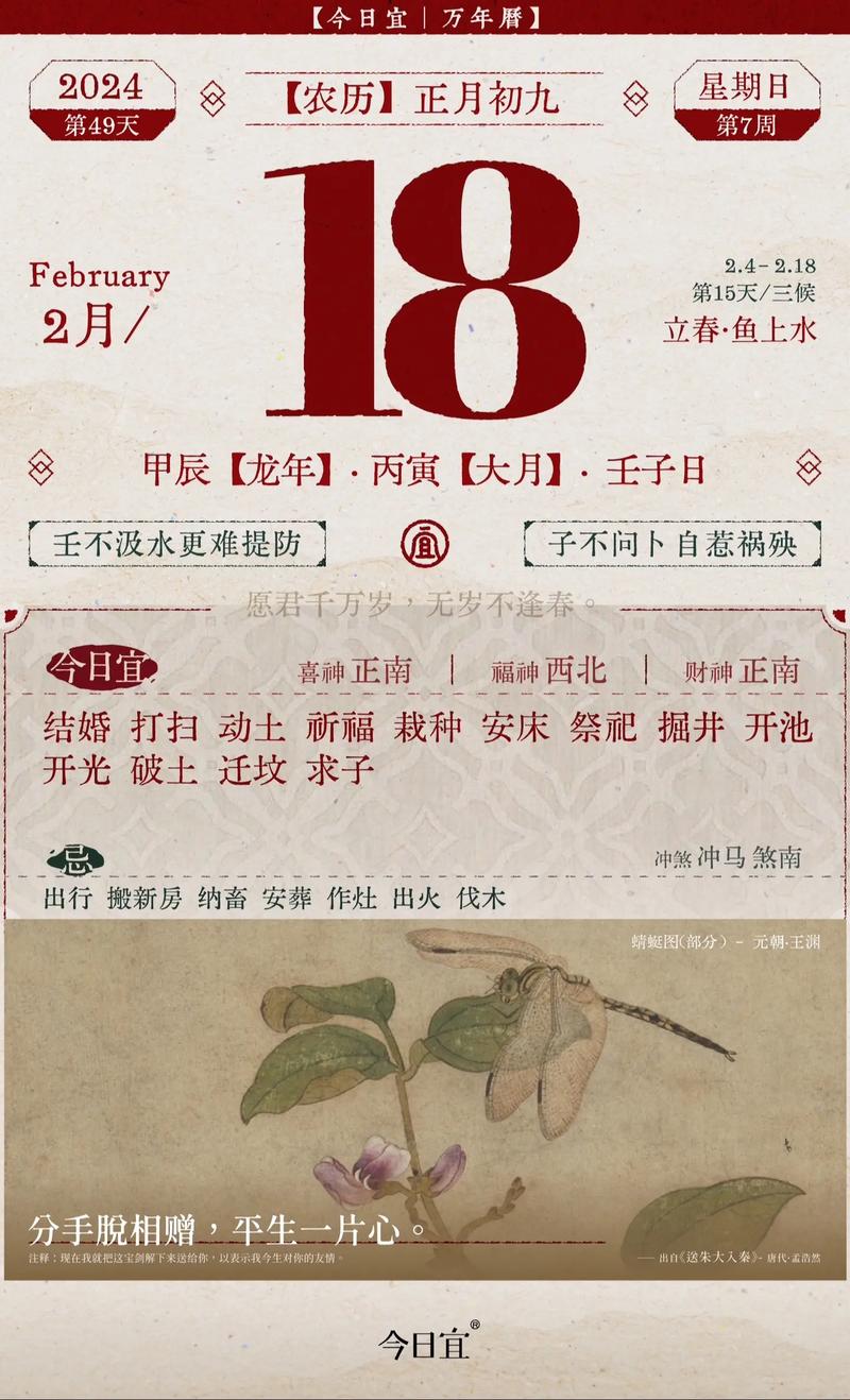 2024年2月18日的日子吉兇可以從黃歷、星象、生肖和星座等多個(gè)角度進(jìn)行分析。以下是對(duì)這一天的詳細(xì)分析。
