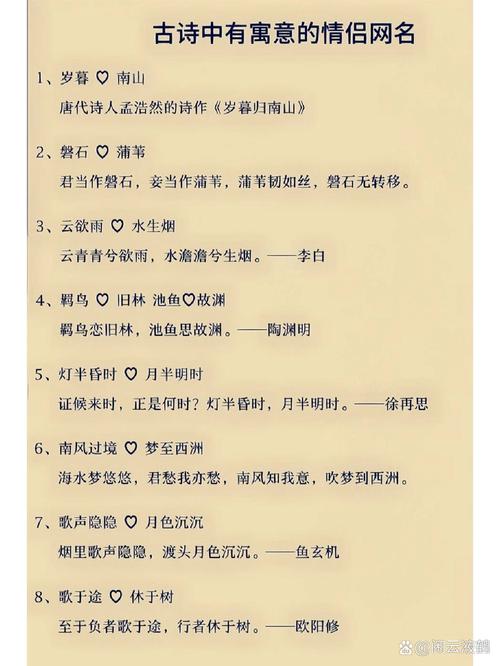 從古詩詞中尋找匹配的名字,是一種充滿詩意和文化內(nèi)涵的選擇。通過意境的契合、陰陽的互補(bǔ)、寓意的深遠(yuǎn)以及文化的傳承,我們可以找到一對既符合個人氣質(zhì),又具有美好寓意的名字,讓彼此的人生更加精彩。選擇名字不僅僅是選擇一個符號,更是選擇一種生活態(tài)度,一種文化傳承。