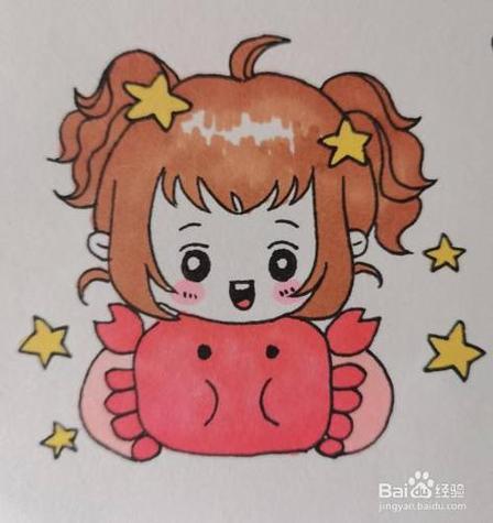 小巧的鼻子,上揚的嘴角,垂耳的頭發(fā),添上代表螃蟹的小符號,細膩多情的巨蟹座女孩形象呼之欲出。