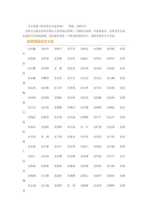 今年史姓男寶寶起名 史姓男孩簡單起名