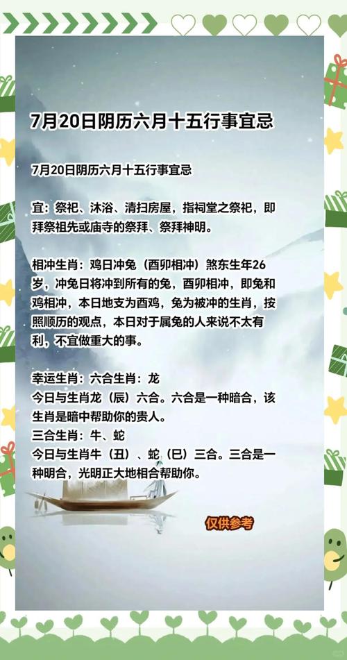 日期: 2024年7月25日,星期四,農(nóng)歷六月二十,沖猴(甲申)煞北。