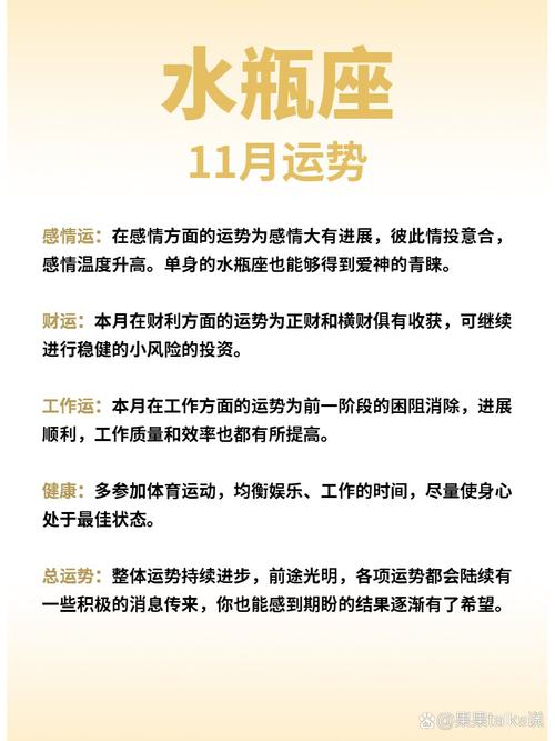 水瓶座在2024年11月的愛(ài)情運(yùn)勢(shì)有提升的空間。以下是一些具體的建議,幫助水瓶座在這個(gè)月里提升自己的愛(ài)情運(yùn)勢(shì):
