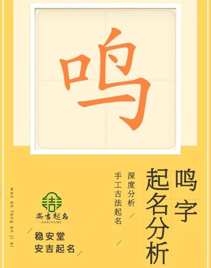 鳴,意為鳴叫、發(fā)聲,引申為聲譽遠播、名揚四海。它象征著才華洋溢、出類拔萃,也寓意為人正直、聲震寰宇。