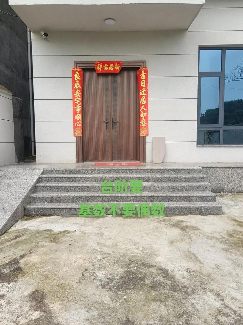 臺階數(shù)量以單數(shù)為宜,特別是三、五、七等陽數(shù)。臺階朝向應(yīng)與大門朝向一致,不可與大門朝向相反。