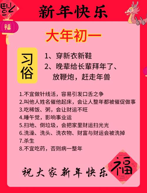 大年初一到初七都是吉日,但需要注意一些禁忌,避免觸犯禁忌,招惹災(zāi)禍。