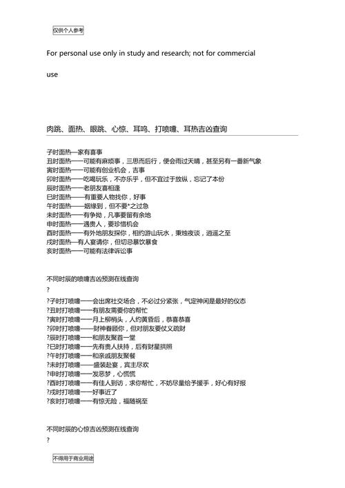 面耳熱預(yù)測(cè)吉兇是一種古老的傳統(tǒng)習(xí)俗,主要通過(guò)觀察耳朵和面部的熱度變化來(lái)預(yù)測(cè)未來(lái)的吉兇禍福。雖然這種方法在民間廣為流傳,但其科學(xué)性和準(zhǔn)確性存在爭(zhēng)議。以下是對(duì)這一現(xiàn)象的詳細(xì)分析。