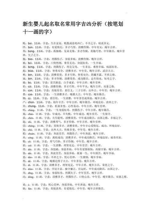 十一畫漢字在吉兇含義上有著豐富的文化背景和象征意義。以下是對十一畫漢字的吉兇含義的詳細(xì)分析。