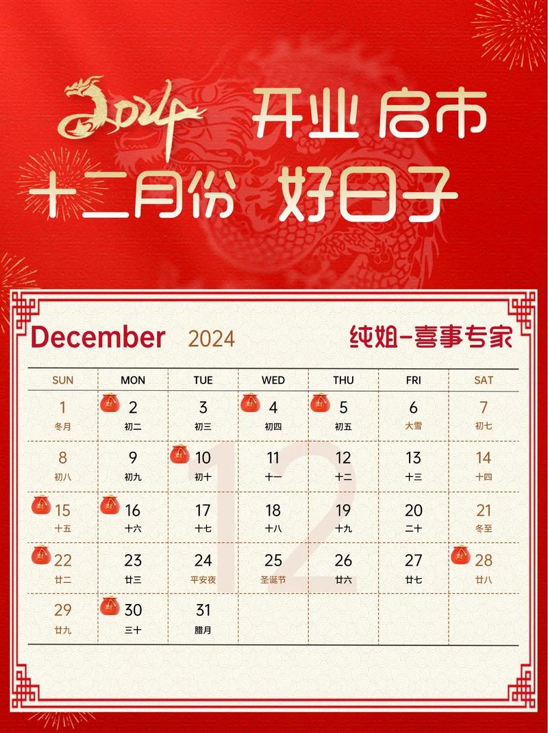 選擇開業(yè)吉日是中國傳統(tǒng)文化中的一個重要習(xí)俗,認為選擇一個好日子可以帶來好運和順利。以下是2024年12月適合開業(yè)的黃道吉日。