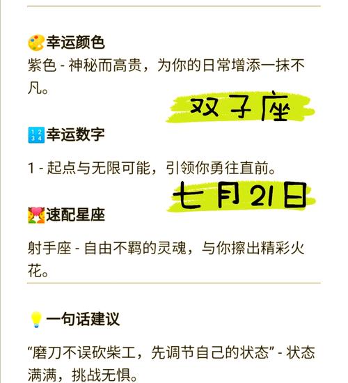 今天是雙子座的你一個非常幸運的日子。財運亨通,工作順利,感情甜蜜,做什么都順心如意。只要你保持積極樂觀的心態(tài),今天你就有可能招財進寶,實現(xiàn)你的財富夢想。