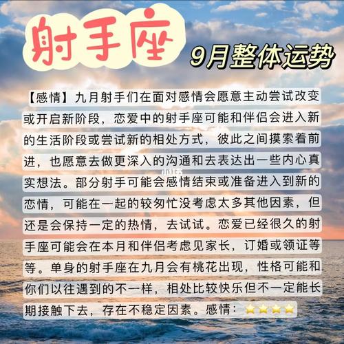 3. 事業(yè)與愛情的平衡:射手座需要學(xué)會(huì)合理分配時(shí)間,避免因工作繁忙而忽視了伴侶的感受,同時(shí)在工作中也能得到伴侶的支持與理解,共同邁向美好的未來。