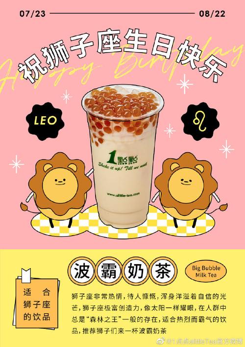 4. 喜歡嘗試新奇的奶茶口味:獅子座好奇心強,喜歡嘗試各種新奇的奶茶口味,他們可能會頻繁打卡不同的奶茶店,探索新的奶茶風味。