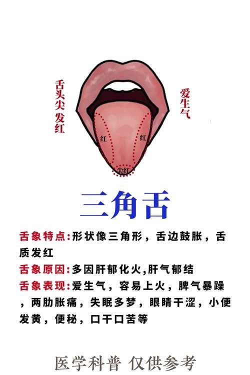 舌頭的形狀:舌頭的形狀可以反映一個人的性格特點。例如,舌頭大而方長的人通常為人正派,行事光明磊落。