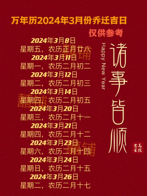 公歷2024年4月8日,農歷二月三十,星期一,沖猴煞北,吉神宜趨有母倉、不將、臨日、敬安、月德合、圣心。這一天也是吉日,適合搬家,因為它不僅符合黃歷上的吉日要求,還能帶來好運。