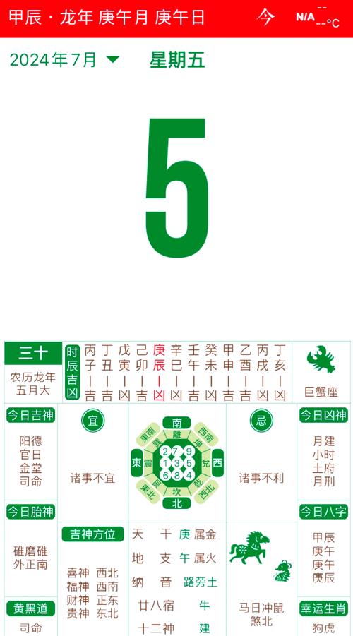根據(jù)2024年的黃歷,7月5日是黃道吉日。這一天值神是司命,屬于黃道吉日,適合進(jìn)行祭祀、祈福、出行、赴任、訂婚等活動(dòng)。
