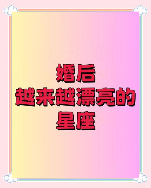1. 金牛座:金牛座的女性天生麗質(zhì),她們擁有白皙細(xì)膩的皮膚、精致的五官和勻稱的身材。結(jié)婚后,金牛座女性會(huì)更加注重保養(yǎng),她們會(huì)花更多的時(shí)間和精力來呵護(hù)自己的容顏。因此,金牛座女性在結(jié)婚后會(huì)變得更加美麗動(dòng)人。