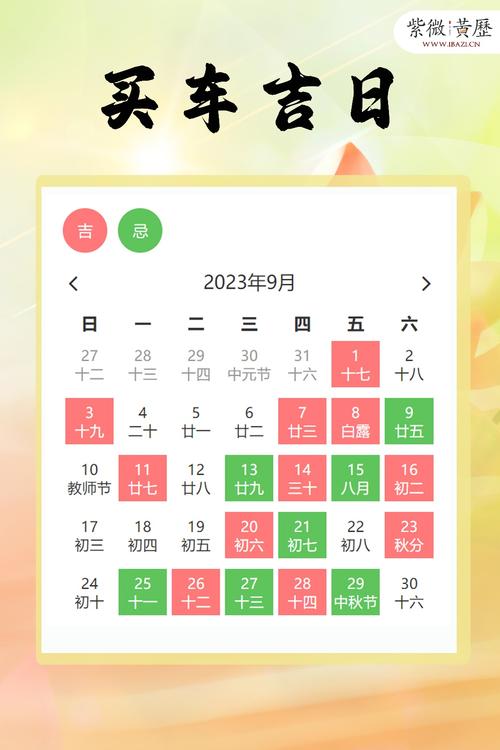 除了以上三個(gè)黃歷吉日外,九月還有其他一些適合辦大事的日子。比如,九月初一,寅時(shí)(3-5點(diǎn))至辰時(shí)(7-9點(diǎn)),適合開(kāi)業(yè),求財(cái)。九月初五,巳時(shí)(9-11點(diǎn))至未時(shí)(13-15點(diǎn)),適合嫁娶,求子。九月初九,辰時(shí)(7-9點(diǎn))至午時(shí)(11-13點(diǎn)),適合喬遷新居,求平安。