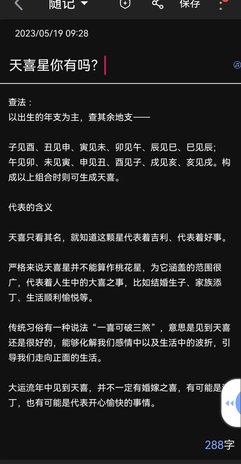 天喜,顧名思義,就是天賜的喜悅,是八字中一種極好的吉星。如果一個(gè)人八字命帶天喜,那么他這一生注定會(huì)是幸運(yùn)的,好事連連,喜事不斷!