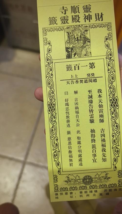 1. 杭州北高峰靈順?biāo)掳姹荆哼@個(gè)版本主要供奉“五顯財(cái)神”,簽文內(nèi)容與財(cái)運(yùn)相關(guān),適合祈求財(cái)運(yùn)亨通。