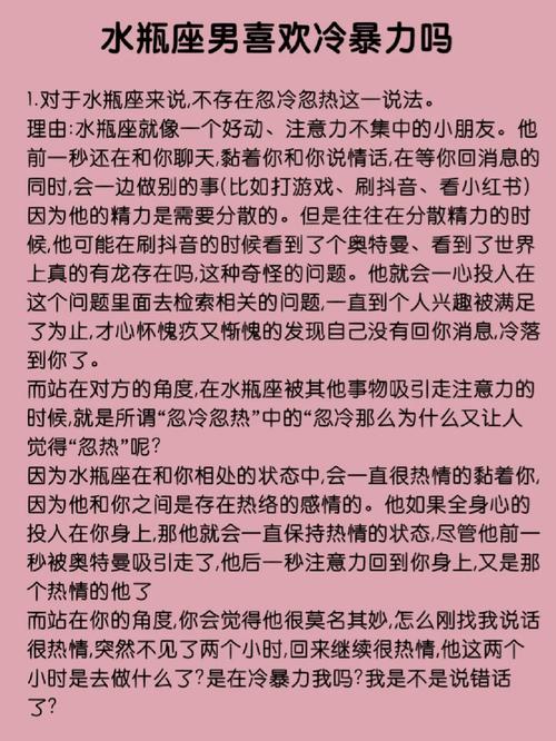 水瓶座也喜歡跟你冷暴力,可能是因為他覺得你沒有愛他。水瓶座是很有愛心的星座,他們希望自己的戀人也能愛他們。如果你不愛水瓶座,或者你沒有表現(xiàn)出你對水瓶座的愛,那么水瓶座就會跟你冷暴力。