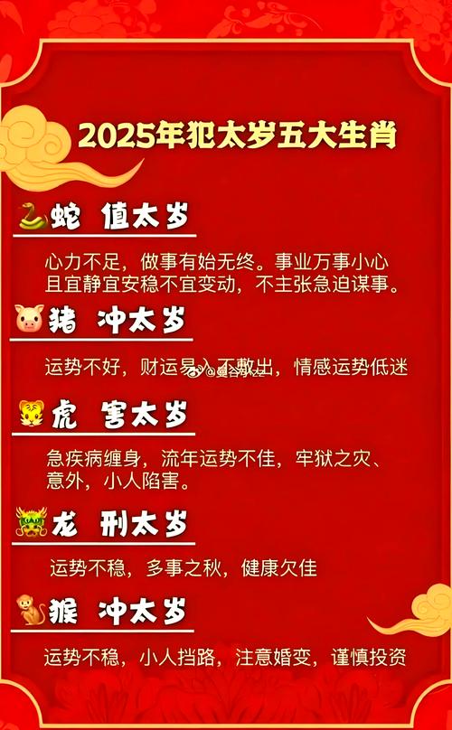 沖太歲的影響:屬豬人在2025年面臨沖太歲的挑戰(zhàn),事業(yè)運勢動蕩不安,容易遇到各種變動和挑戰(zhàn)。