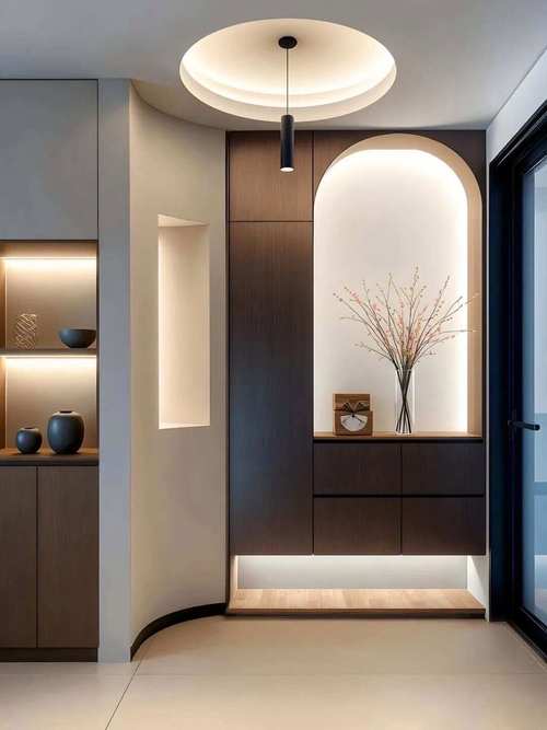 可以將鏡子嵌入玄關(guān)柜的設(shè)計(jì)中,這樣既方便使用,又不影響家居風(fēng)水。這種設(shè)計(jì)既能利用鏡子的反射作用,又能保持空間的整潔和美觀。