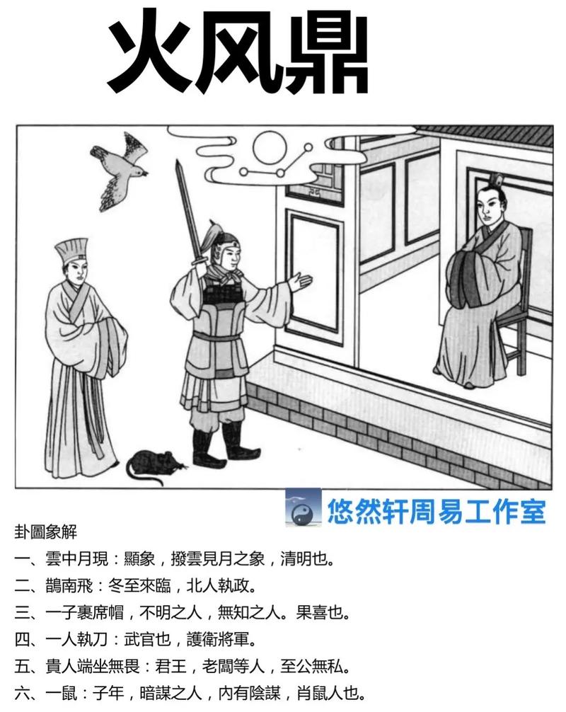 火風鼎卦,出行平安,一路順風。鼎,安穩(wěn)之器,象征平安、順利。風火相助,象征順風順水,一路坦途。離火光明,照亮前程,驅(qū)除陰霾,逢兇化吉。