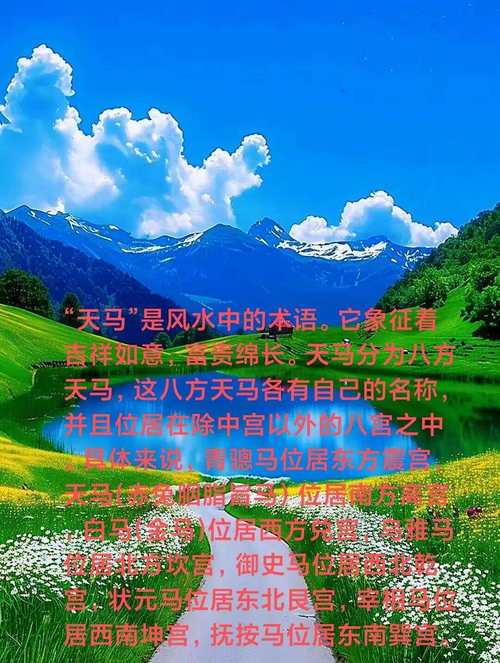 貴人騎馬是風(fēng)水學(xué)中的一個(gè)概念,指在特定的八卦方位上,天馬山與貴人峰的結(jié)合,預(yù)示著富貴和官運(yùn)的提升。以下是對(duì)其與八卦方位關(guān)系的詳細(xì)解析: