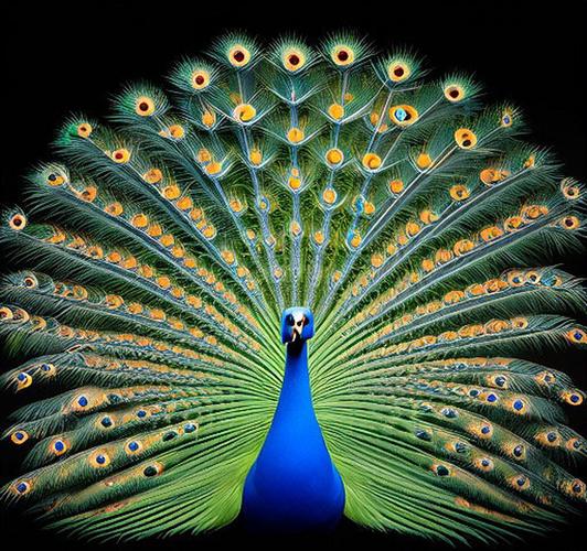 防御和受驚:當孔雀感到受到威脅時,它們會展開尾羽以擴大自身的體型,從而給敵人造成更大的威懾。