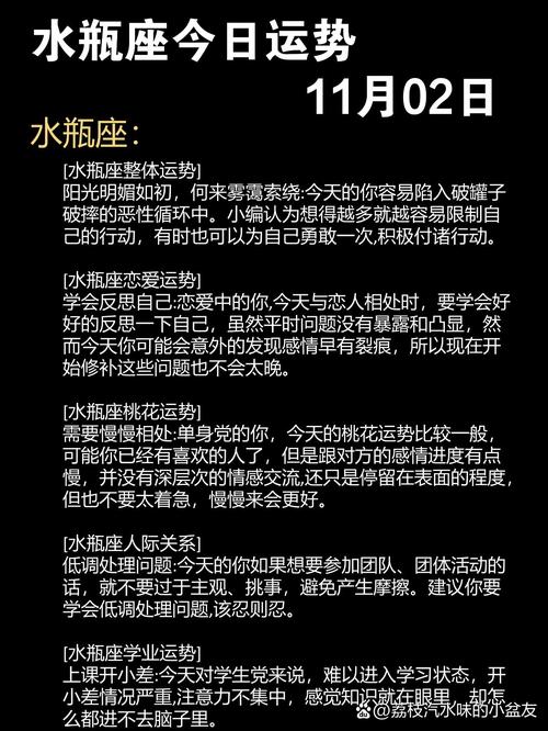 水瓶座今日運勢涉及多個方面,包括愛情、事業(yè)、財運和健康等。以下是詳細的運勢分析。