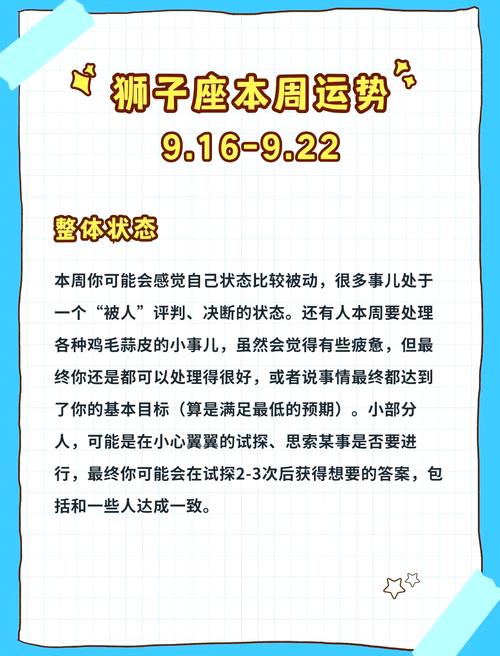 獅子座的學(xué)子們,你們擁有著獅子座獨有的霸氣與自信,在學(xué)業(yè)的道路上,你們將乘風(fēng)破浪,披荊斬棘,取得輝煌的成就。獅子座的學(xué)業(yè)運勢,如同獅子那光輝的榮耀,照耀著整個學(xué)涯。他們將如同一顆冉冉升起的明星,在學(xué)業(yè)的天空中閃耀著耀眼的光芒。