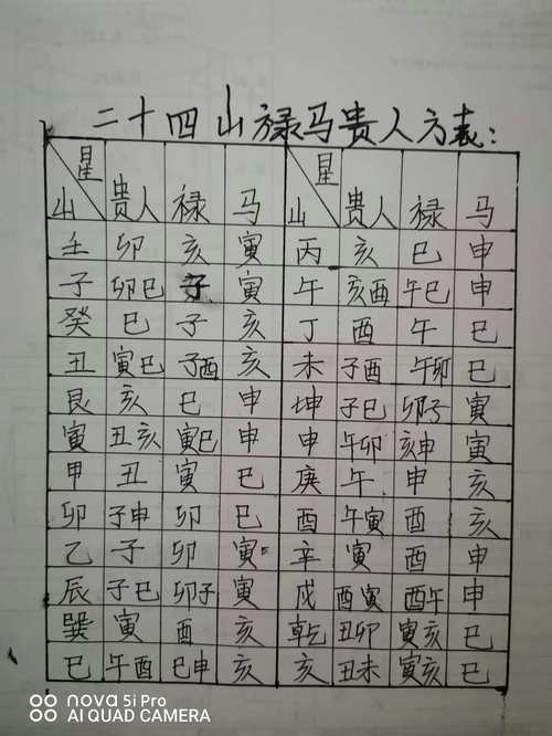 八字命理風(fēng)水中祿馬貴人 廿四山貴人祿馬一覽表