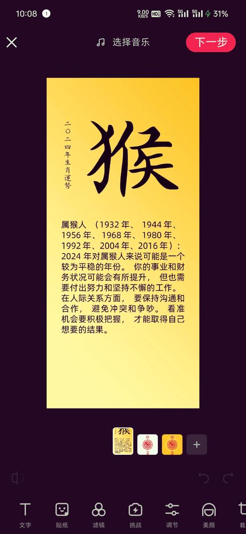 財運方面,生肖猴在這天也是財運亨通,財神爺眷顧有加。外出購物可能撿到寶貝,投資理財也容易賺得盆滿缽滿。猴兒們不妨大膽嘗試一些新的投資項目,說不定就能在這天收獲意外之喜。