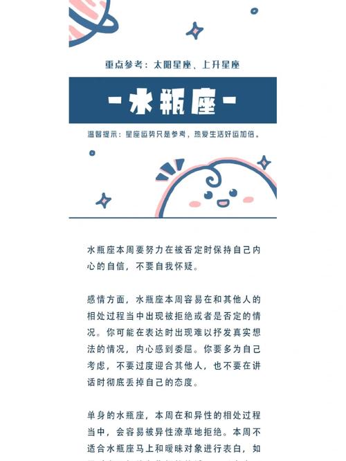 5. 預(yù)防感冒:本周水瓶座的免疫力可能會(huì)有所下降,建議注意保暖,避免感冒等小疾病的侵襲。