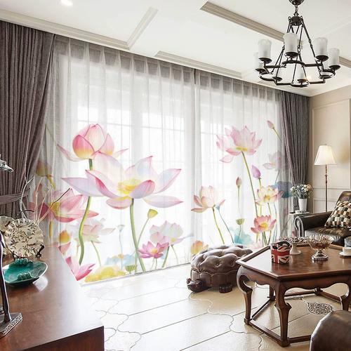 擋煞氣:在客廳掛荷花窗簾可以擋住煞氣,寓意家庭和睦。